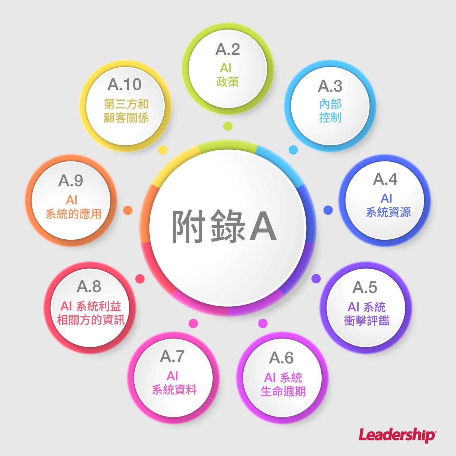 - 領導統御(Leadership):強調高層管理者在 AI 管理系統中的角色,包括制定政策、確保資源和明確職責。