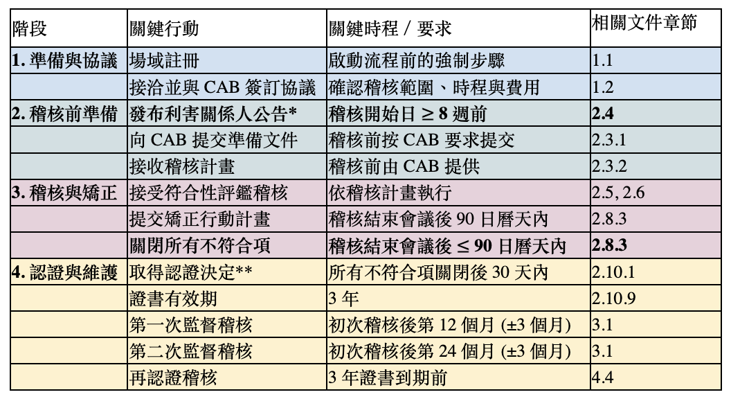 AWS 會在官網公告評估日期,利害關係人可自公告日起至證書有效期間持續提交意見。