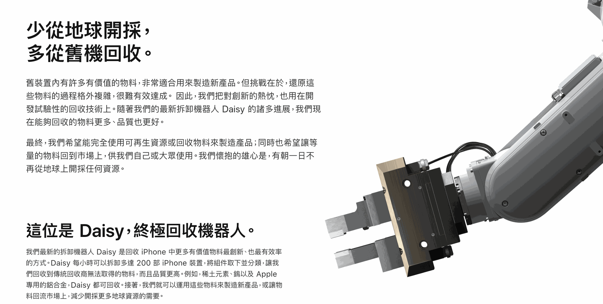 ▲APPLE研發的 Daisy 拆卸機器人,每小時可拆卸200部iPhone。圖片來源:Apple 官網