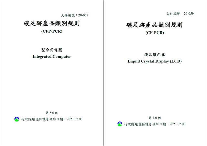 目前國內資料庫共有110餘項有效之CF-PCR,分類包含「動、植物產品」、「調製食品」、「飲料」、「礦產品及非金屬礦物製品」、「化學材料及其製品」、「塑膠、橡膠及其製品」、「皮革及其製品」、「木、紙漿、紙及其製品」、「紡織品及其製品」、「基本金屬及其製品」、「機器、機械、電機、電子等設備及用具」、「運輸工具」、「光學及精密儀器設備」、「其他雜項製品」、「服務類產品」、「未歸類」等共16類。
