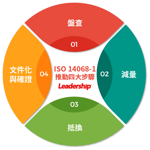 領導力企管擁有眾多環境能源與風險管理系統輔導成功案例,並提供 ISO 14068-1 最佳管理方案,包括教育訓練、流程建置、碳盤查、碳減量及碳抵換,透過紮實五步驟協助企業建置完整碳中和查證,歡迎立即 與我們聯繫。