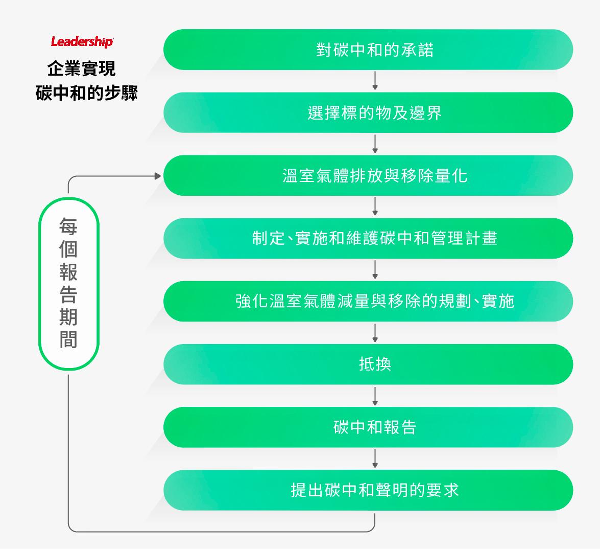 實現碳中和企業應依下列步驟採取行動如下: