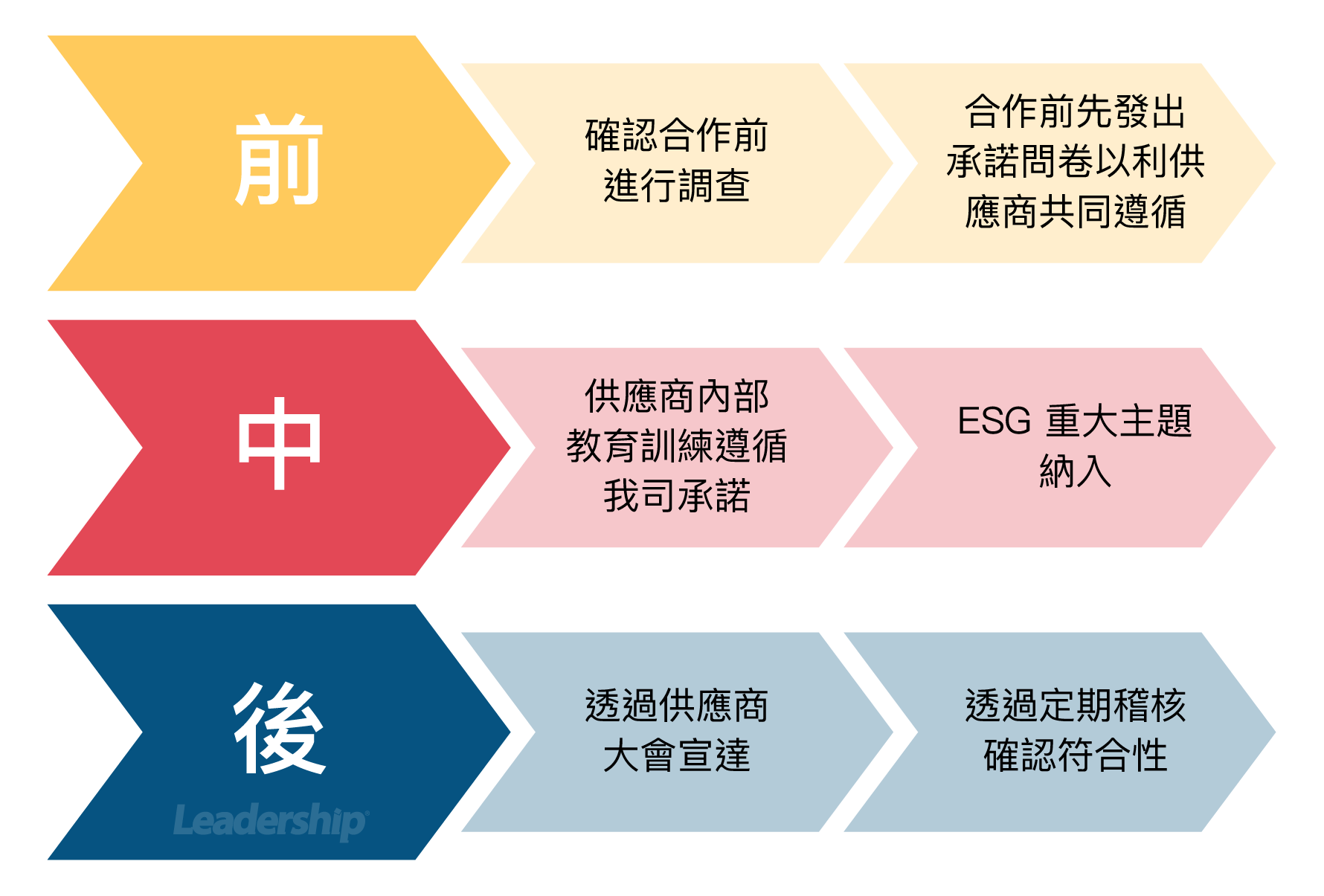 - 遵守法規、國際行為準則及國際人權政策,並要求供應商一同遵守。
