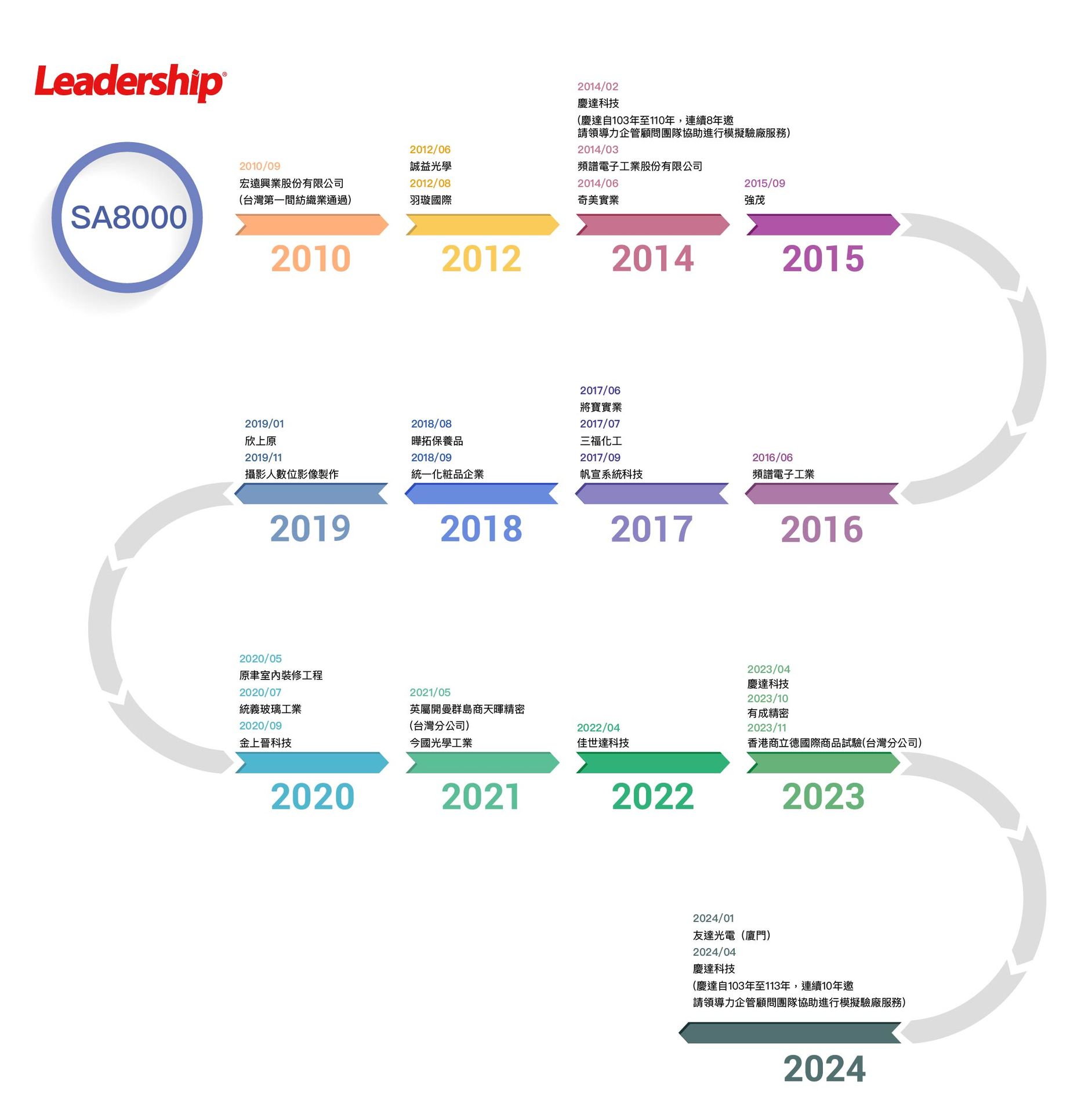 新版 SA8000:2026 交給領導力企管!領導力企管已成功協助 宏遠興業、華碩電腦、華泰電子、威華達資訊、奇美實業...等企業,完成社會責任驗廠輔導。請前往 成功案例 了解更多。或直接透過下方表單欄位填寫您的聯絡方式,將有專人與您咨詢。