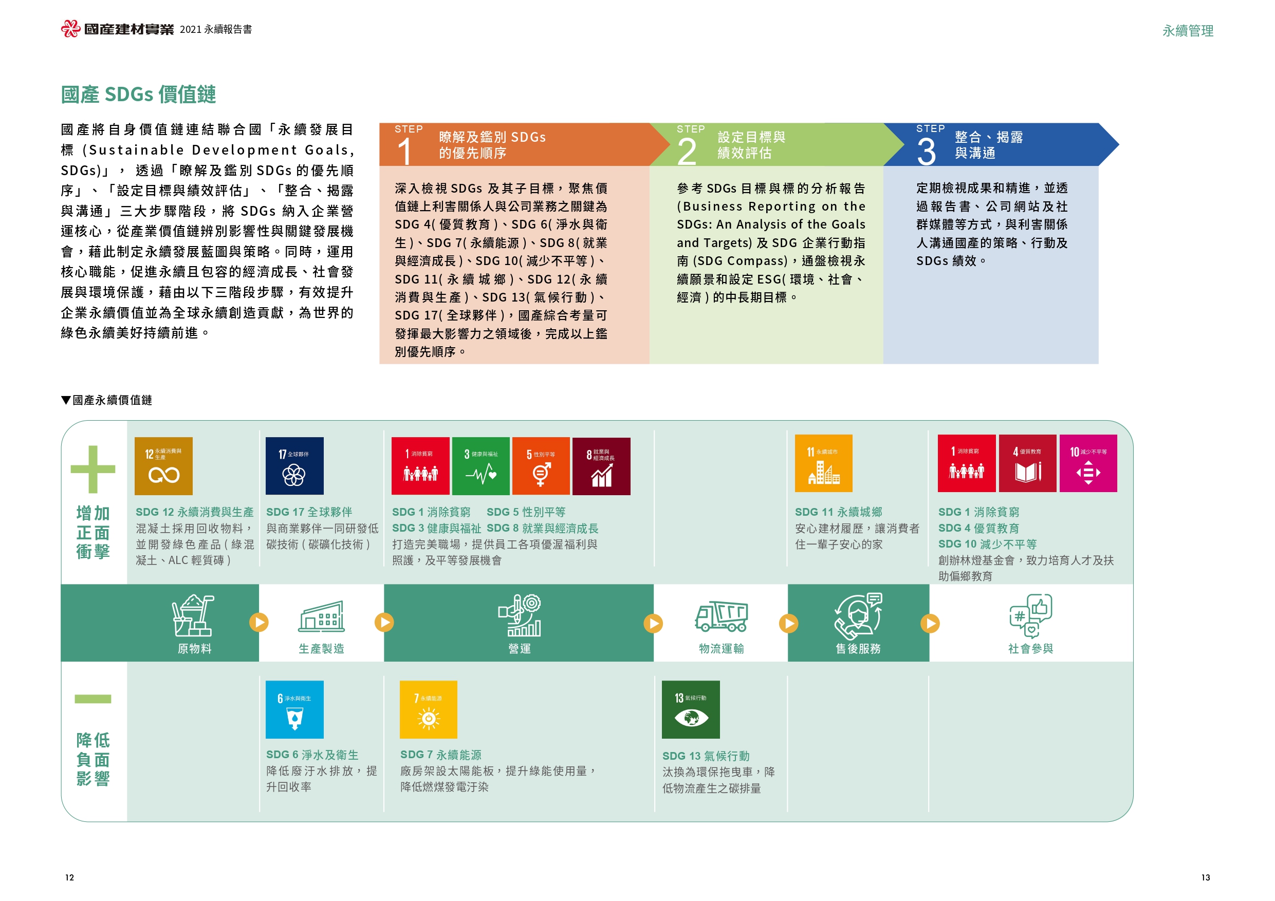 國產建材除了預拌混凝土、營造建設及建材外,事業觸角延伸至保全、通訊、傳播、科技等多重領域,徹底深入大眾生活層面,也因此「建立客戶信賴」更為企業經營所重。故國產本次的報告書跳脫過往較為嚴肅、單調的編排風格,但同時又承襲過往傳統,展現營造建設業簡約大方的企業文化,再輔以明亮色系區分 ESG 議題,展現水泥業的活力與溫度,同時讓文字閱讀更有效率。