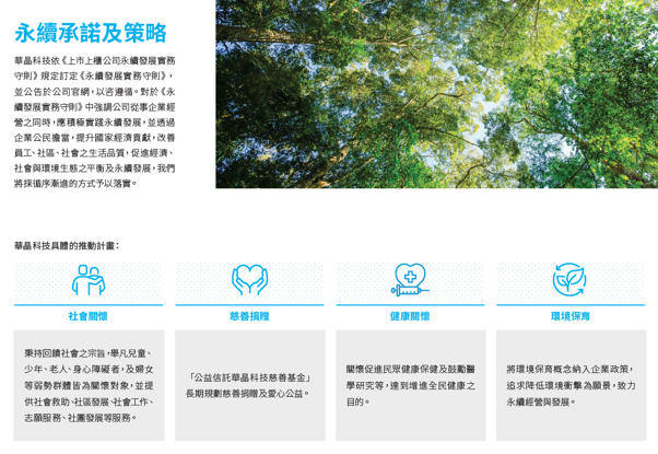 更多詳情可至華晶科技官網 投資人服務專區 參閱完整的永續報告書。