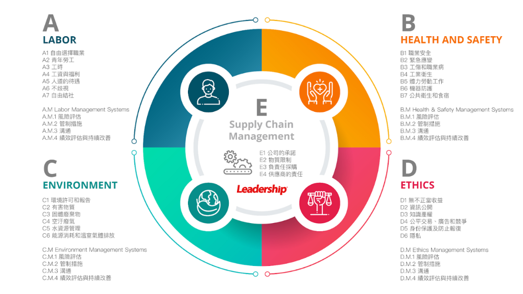 ▲ RBA COC 7.0 五大主題框架:人權、健康安全、環保、商業道德、管理系統。