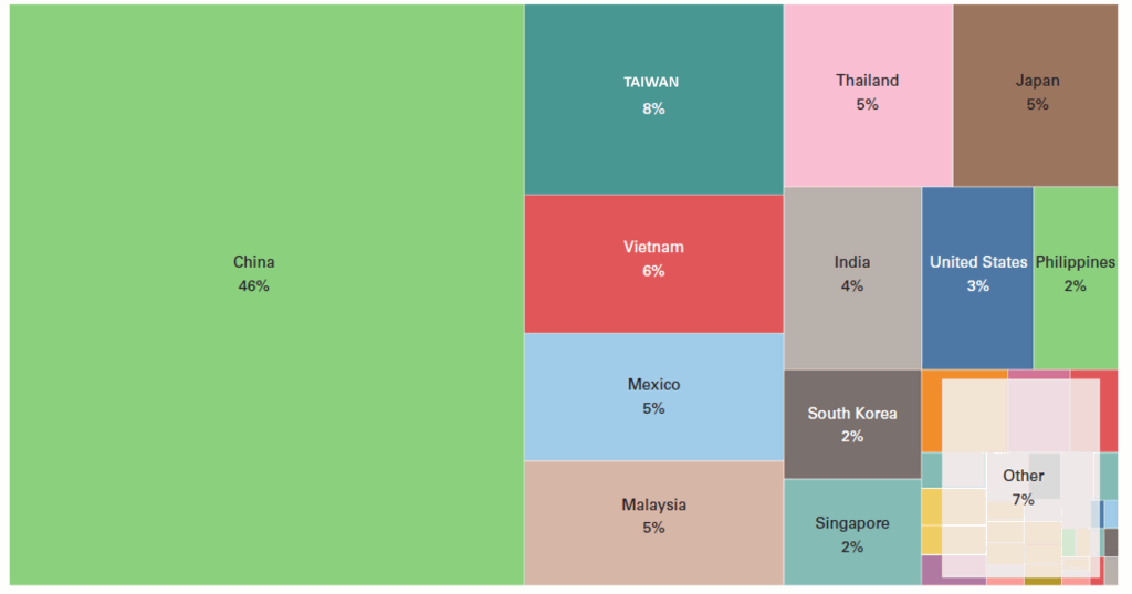 ▲ 在 2022 年,中國工廠是進行最多次驗廠的國家 (46%),但相較於 2020 (56%) 與 2021 (49%),中國的稽核量有逐年遞減趨勢,緊接著就是 台灣 (8%)。