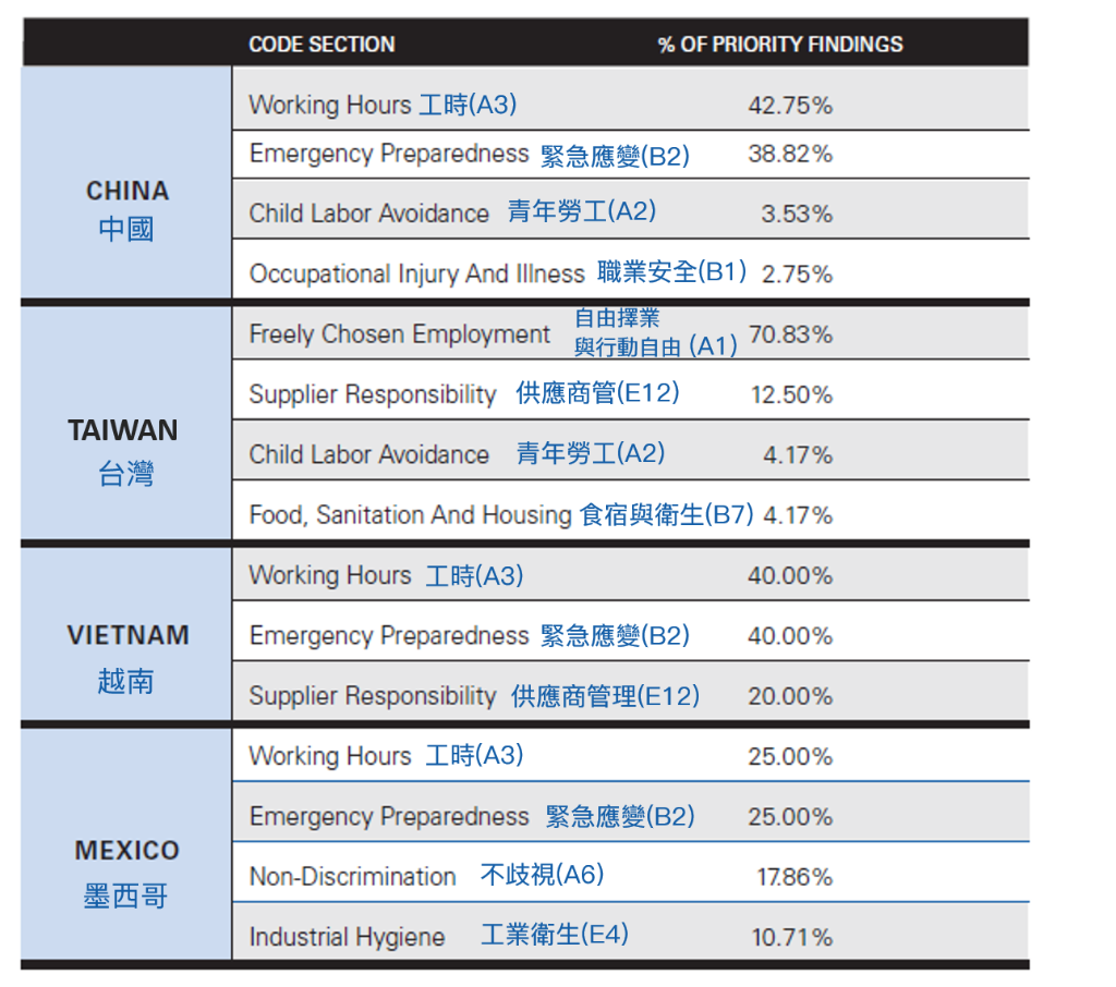 焦點6:全球 RBA 稽核前四名國家常見缺失