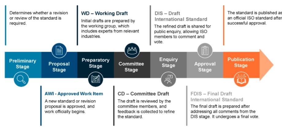 詢問階段(DIS – 國際標準草案):完善後的草案將向公眾開放,讓 ISO 成員發表評論和投票。