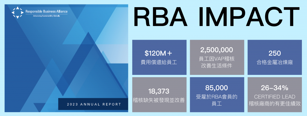 RBA(Responsible Business Alliance,責任商業聯盟)制定了電子業及其供應鏈制適用之行為準則規範,目的是為了確保員工安全的工作環境、受尊重的工作條件、公司符合環保規範、符合商業誠信道德。作為非官方的人權監督機構,RBA 推出各種方案提升產業鏈的人權與ESG 績效,透過年報可了解 RBA 對於全球人權、ESG 做出的貢獻。以下領導力企管節錄年報中重點。