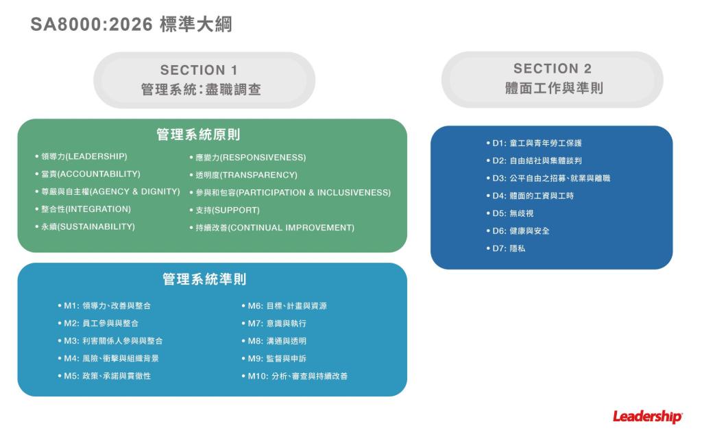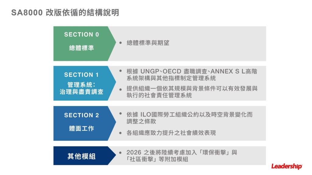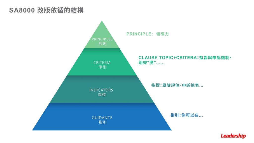 ▲ SA8000 改版依循的結構(現行草案僅是出「原則與準則」,指標、指引尚未釋出)