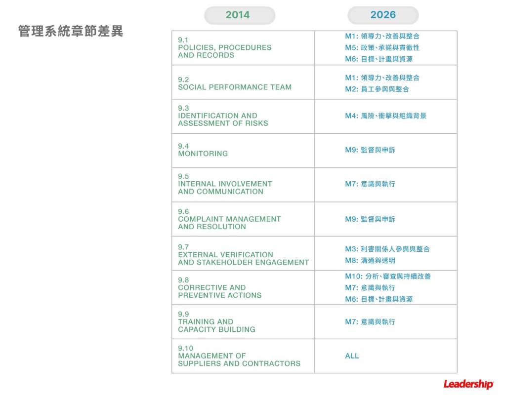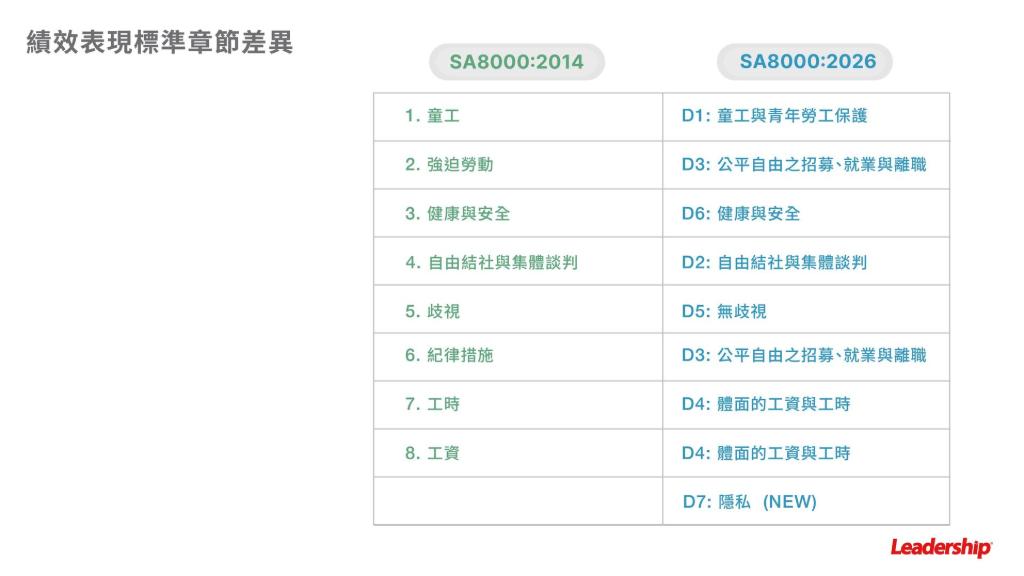 跟隨 ISO9001 與其他多數 ISO 系統之標準架構,SA8000 本次改版除了原本較為被動之負面風險管理,亦加入組織得主動爭取之「機會」思維,以期企業不只將 SA8000 視為最低基本要求,而是可以成為更精進、更為社會共榮貢獻做出努力之組織或企業。