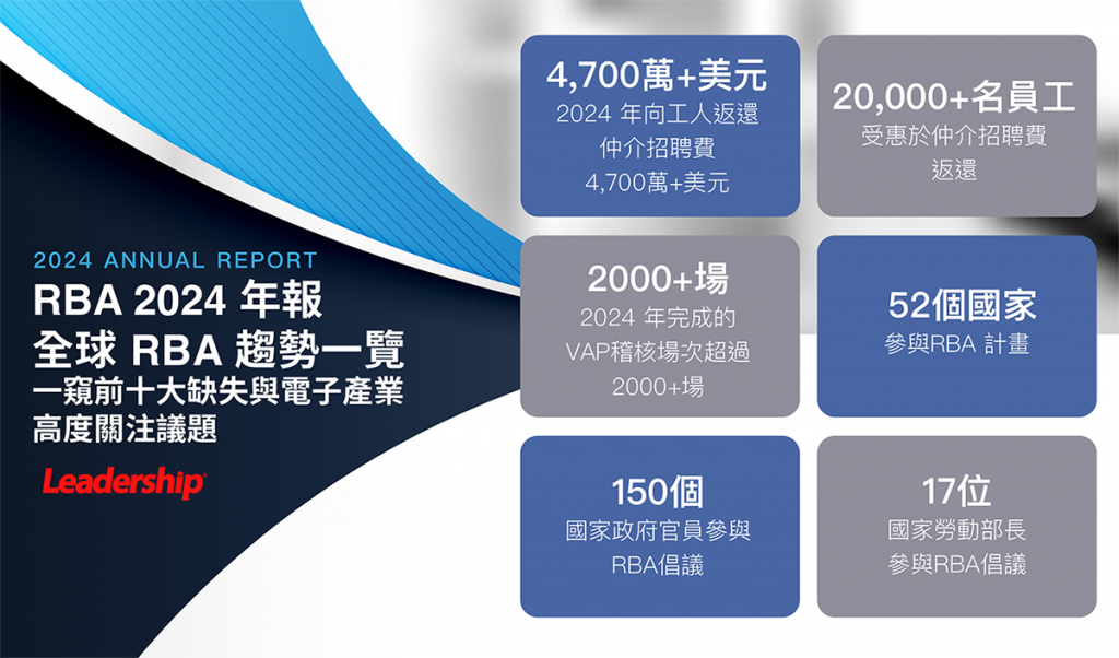 2024 年適逢 RBA 成立 20 週年,會員數已突破 614 家,VAP評鑑突破2,000件,涵蓋52國企業。年報中揭示其在 ESG、人權與合規治理上持續深化的影響力。以下領導力企管將節錄 RBA 2024 年報重點。