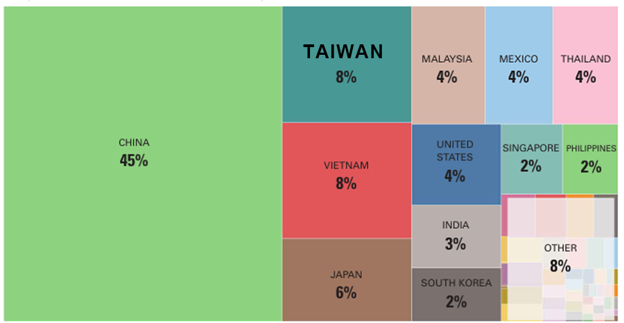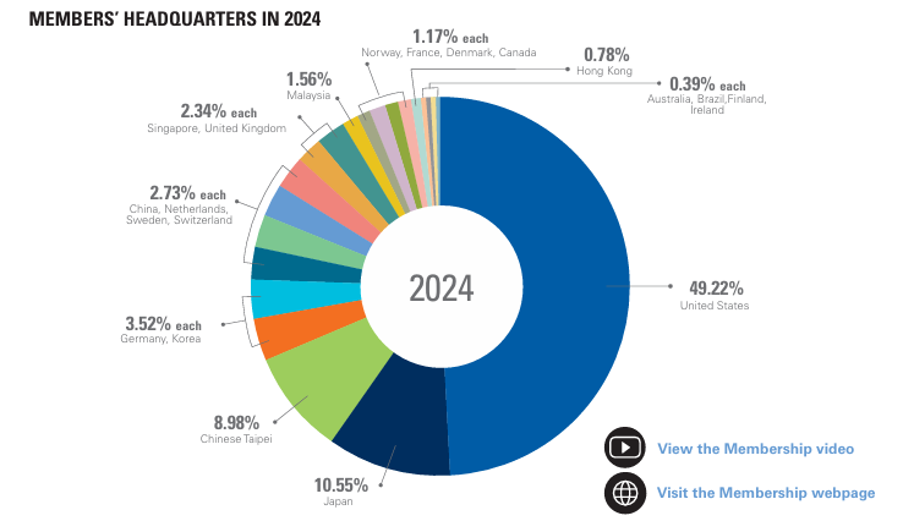 RBA 的會員占比(以總部所在地呈現)代表各國對全球永續倡議的參與度及影響力。其中美國總部成員佔比最高,達 49.22%,台灣則以 8.98% 排名第三。