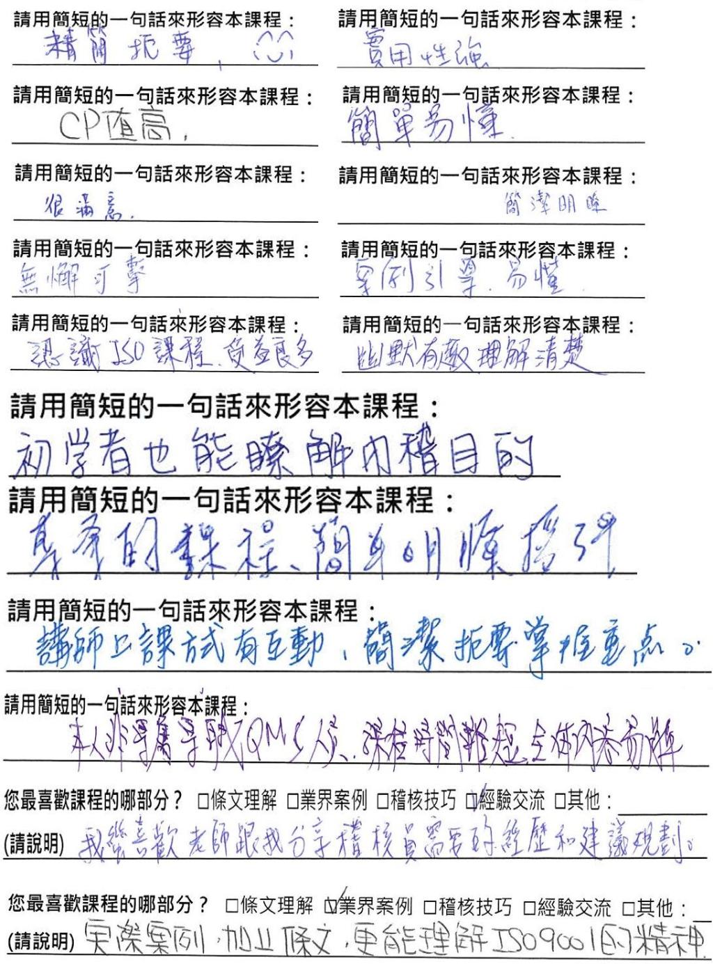 - ISO 9001內部稽核員內容包括授課、情境演練,並利用實際的案例討論。