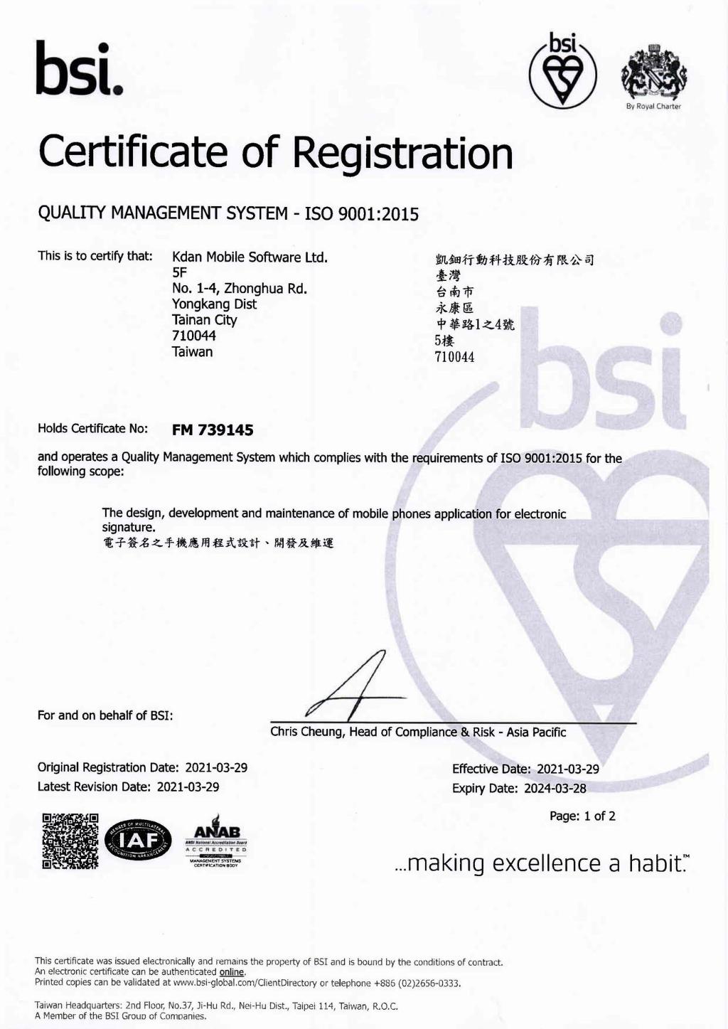 獨家好康 !! 領導力企管獨家與凱鈿行動科技 (Kdan Mobile) 合作,提供導入 ISO 9001 免費試用凱鈿行動科技 點點簽(DottedSign) 電子簽署服務一個月,若有興趣的朋友們,歡迎 留言給我們 !