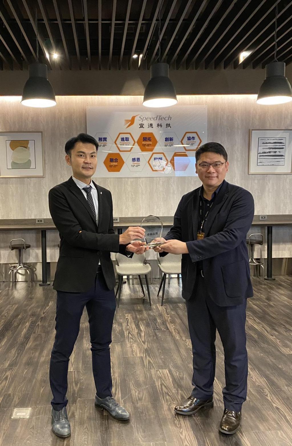宣德科技張誌仁總監(右)與領導力企管總經理王聖源頒獎合影。宣德科技/提供。
