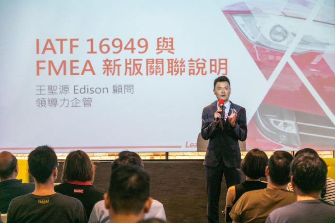 研討會一開始,由領導力企管總經理暨資深顧問師王聖源(Edison),說明 FMEA與 IATF 16949的緊密關聯。