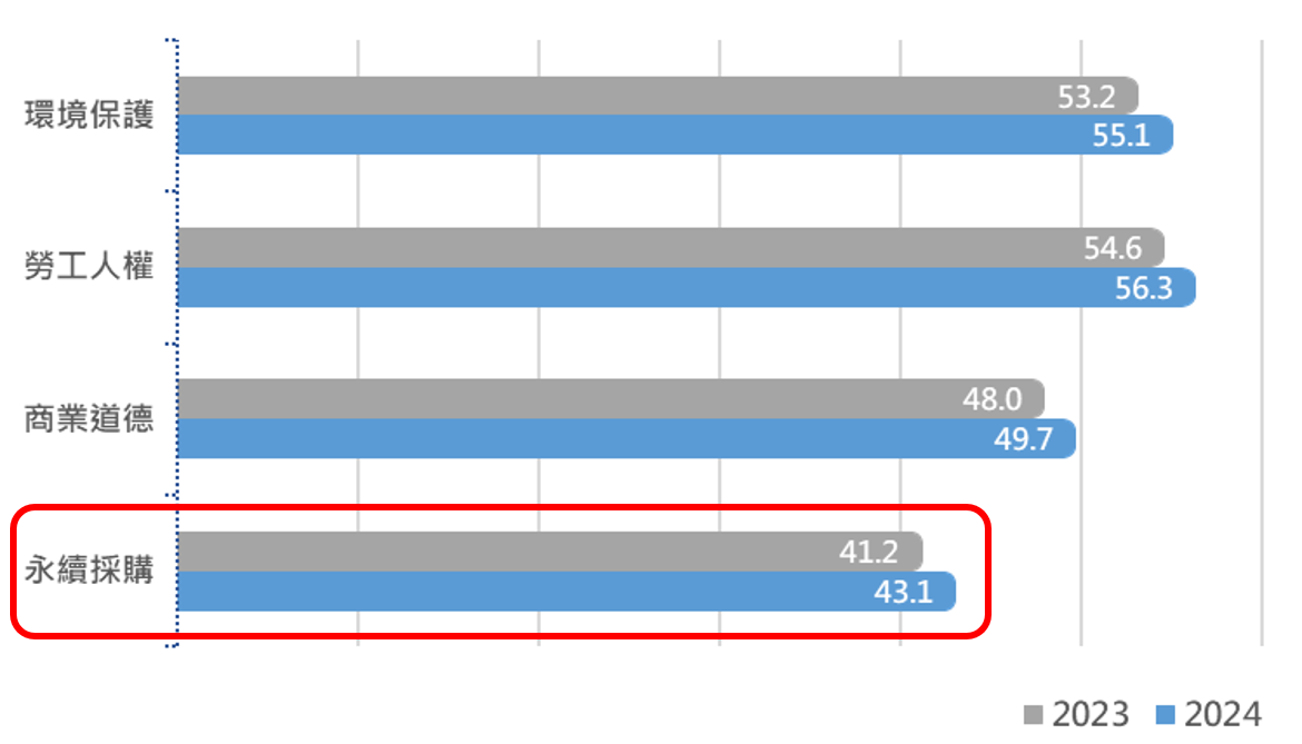 - 成長潛力: 隨著法規日益嚴格,企業不得不開始行動。數據顯示,那些持續參與評分的企業,在永續採購上的分數比新手高出 10 分以上。這證明,當採購方開始將永續性要求深度嵌入供應鏈時,將能有效驅動整體的永續表現提升。