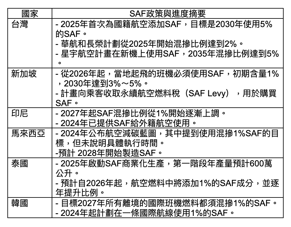 目前亞太地區多數國家仍處於SAF導入初期,整體趨勢呈現「由鼓勵轉向義務化」的過渡階段。