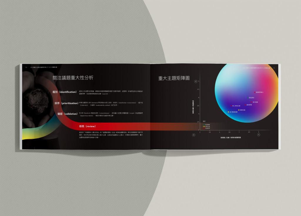 <永續島嶼>是我們對這片土地家園的期許;封面將台灣的高山闊海簡化排列,幻化成象徵∞符號,而2021的圖示設計像是節奏般的與之合奏一場完美的永續交響樂。永續,不可能一蹴可幾!必須制定方向,擬定策略後,再依循著相關準則,如GRI、SDGs..等,分樂章、有節奏的來進行。領導力企管也期望透過自身的報告書來檢視我們對於ESG三個面向的落實。