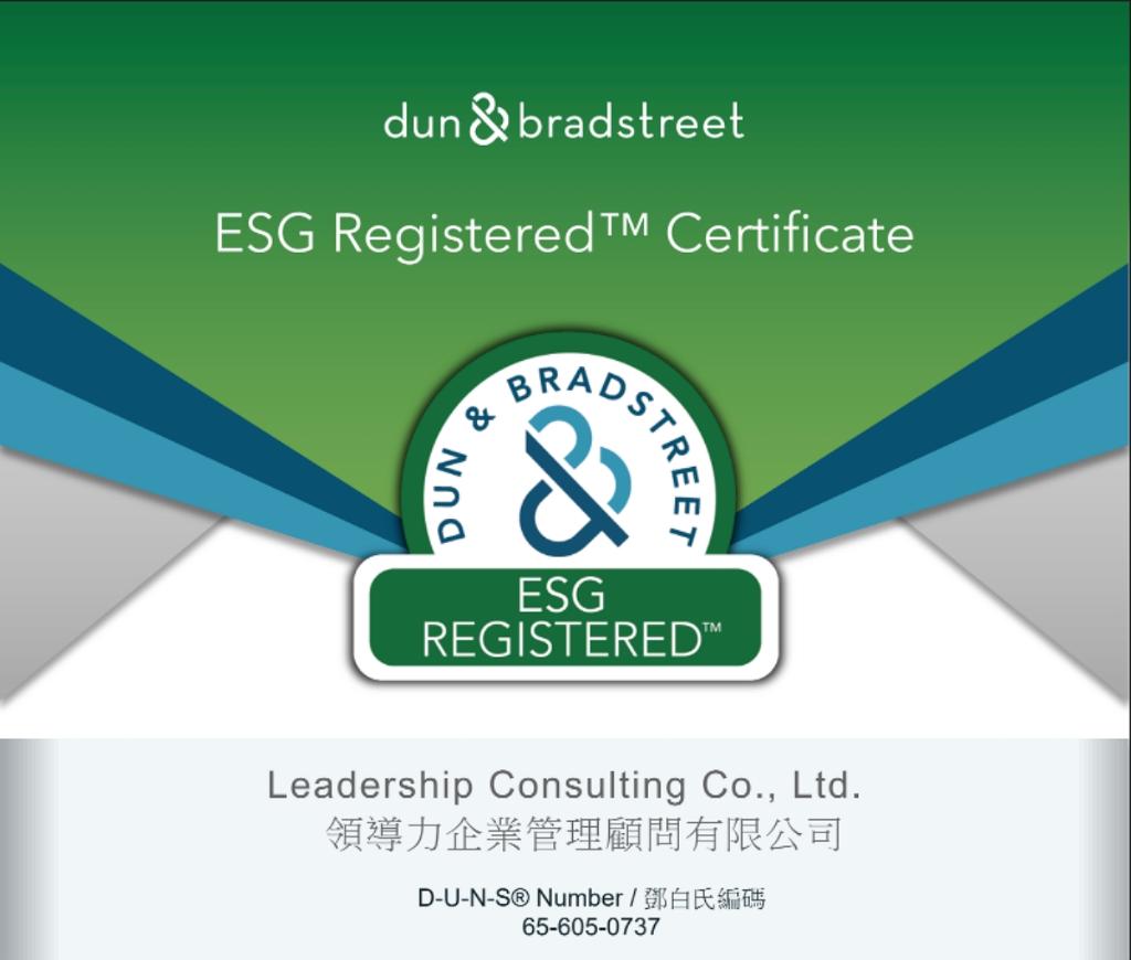 ▲ 領導力企管順利取得「鄧白氏 ESG 認證標章」( D-U-N-S Number 65-605-0737 )