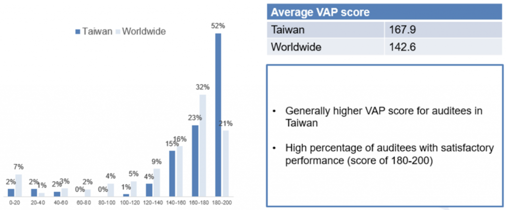 全球 RBA VAP 稽核總數統計,台灣仍是為世界第二,雖然僅佔了 8%,仍可見台灣在電子供應鏈扮演之要角。台灣是一個人口不到 3000 萬的國家,我們正在透過軟實力影響著世界。