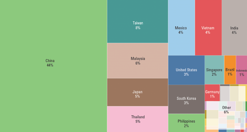 在 2023 年,中國工廠是進行最多次驗廠的國家 (44%),但相較於 2022 (46%) 與 2021(49%),有逐年遞減趨勢,緊接著就是台灣 (8%);而第3、4名也從原本的越南、墨西哥,取代為馬來西亞、日本。全球電子產業轉移可稍微看出端倪。