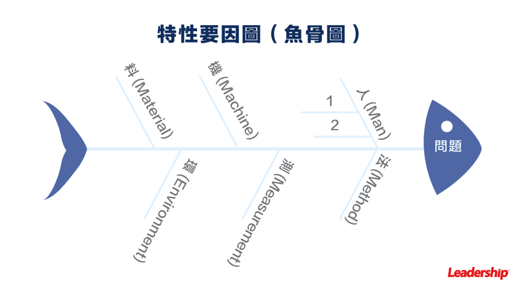 ▲ 透過魚骨圖,找出缺失是來自於人、機、料、法、環、測等原因,是簡單又實用的工具,至今仍被普遍接受於缺失報告應用。(延伸學習資源:管理大師的問題分析與決策課程)