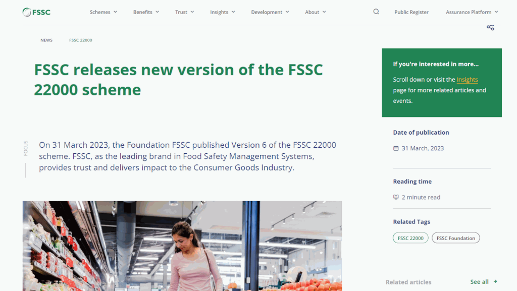 ▲ 節錄自 FSSC 官網在 2023 年 4 月 1 日發布新版 FSSC 22000 V6.0 新聞稿公告