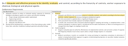 B4.2強調應「採取適當、有效的過程來識別、評估」工人可能面臨的化學、生物及物理暴露的狀況。