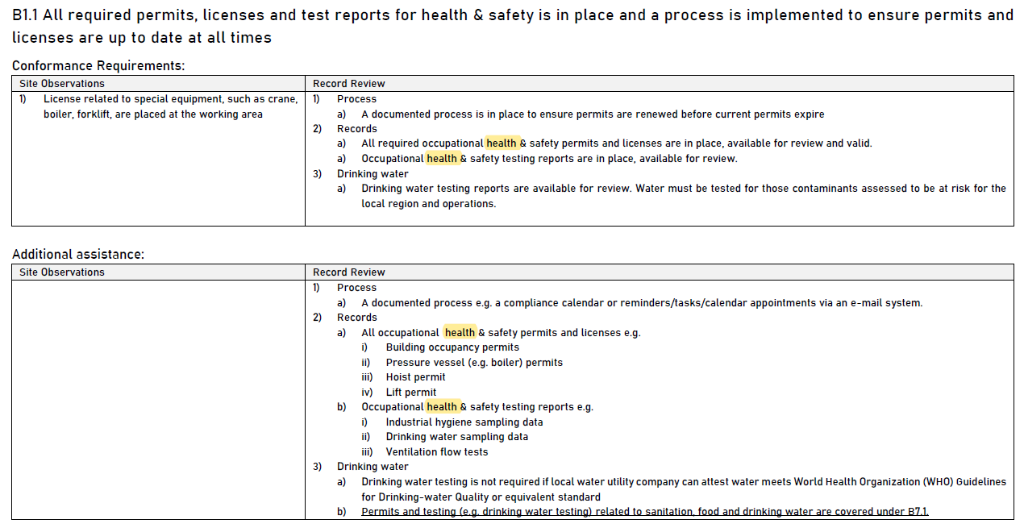 B1.1「合規要求」的「紀錄審查」中,將「健康」字眼加入,強調「健康和安全」需同時具備。