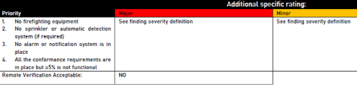 B2.1 評核基準,判定基準變更:「4.所有消防設備要求都已到位,但≥5%失效」。
