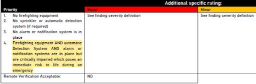 改為:「4.消防設備、自動檢測系統、警報或通知系統已到位,但嚴重受損,在緊急情況下會立即危及生命」。