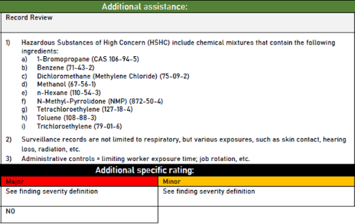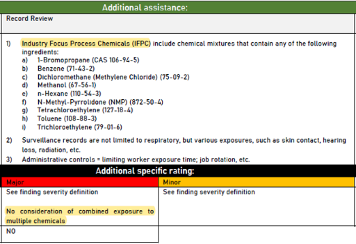 將原本「未考慮同時接觸多種化學品之潛在風險」從 PRIORITY 缺失等級改為 MAJOR 缺失等級。