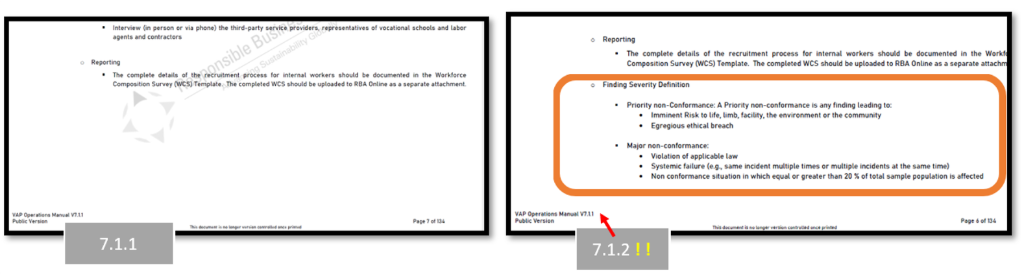 上述的「缺失定義」先前改版已有釋出,這邊再次提供給大家複習一下去年即有發布的差異(VAP 7.0 → VAP 7.1)。另外,還有一個小彩蛋可以發現這次 RBA 改版也相對較不嚴謹,看看【圖3】你找到了嗎?即使是封面改為 7.1.2,文章裡面左下角仍是 7.1.1,代表著僅為 RBA 內部微調。
