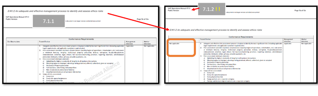 RBA VAP 手冊(RBA VAP Operations Manual)自 2023 年 5 月起 已從 7.1.1 正式改為〝 7.1.2 〞版本。尚未收到通知者,也無須驚慌,您不是被冷落或忽略,只是改版幅度不大,僅微幅調整,故 RBA 官方並未有大動作宣傳,且重要的稽核查檢表【RBA REQUIREMENT LIST】仍然維持 7.1.1 版,本次主要是「版面上」更動,平常心面對即可,已於 2022 改版過的企業,再複習一下先前 7.1 改版重點即可。