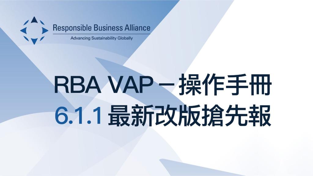 RBA VAP 操作手冊從原本現行的 6.1.0 版本改版為 6.1.1,本次改版也是一個小幅改版,以下由領導力企管社會責任驗廠專門的顧問團隊檢視完官方揭露的資訊後,所彙整的改版內容,提供給業界夥伴們參考: