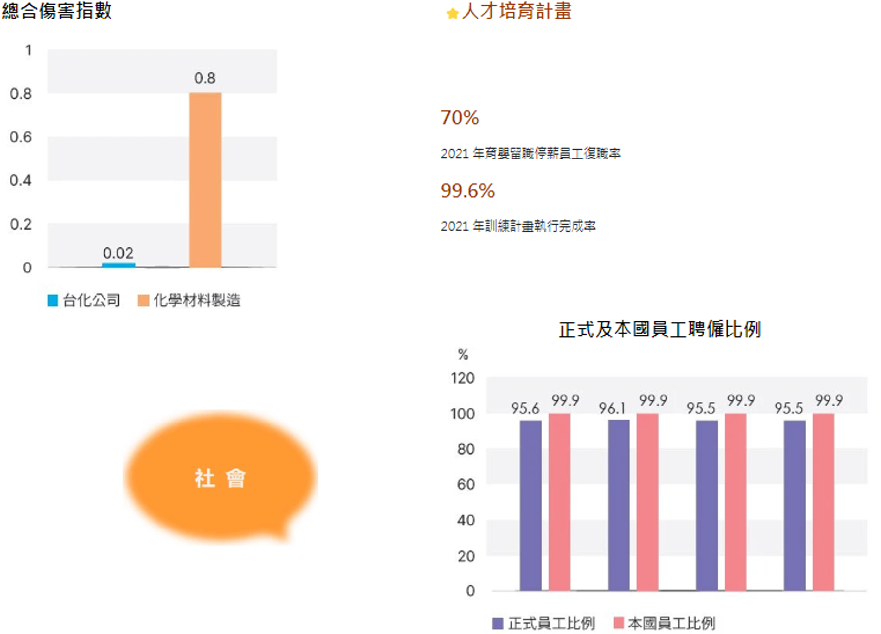 台化(台塑企業)在新冠疫情期間面臨經營上的困難,但台化未裁減人事,反倒是成立緊急應變小組,建置防疫規範,維護員工安全;持續推動能源減耗循環經濟,維護永續環境;加強上下游供應商、承攬商、運輸商及客戶的溝通聯繫管道,增加產銷服務,分享防疫資源。