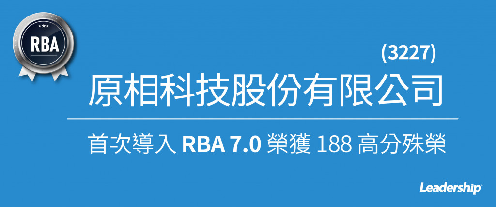 原相科技通過 RBA 7.0 VAP 獲得 188 高分 ( 等同金牌 GOLD 榮耀 )