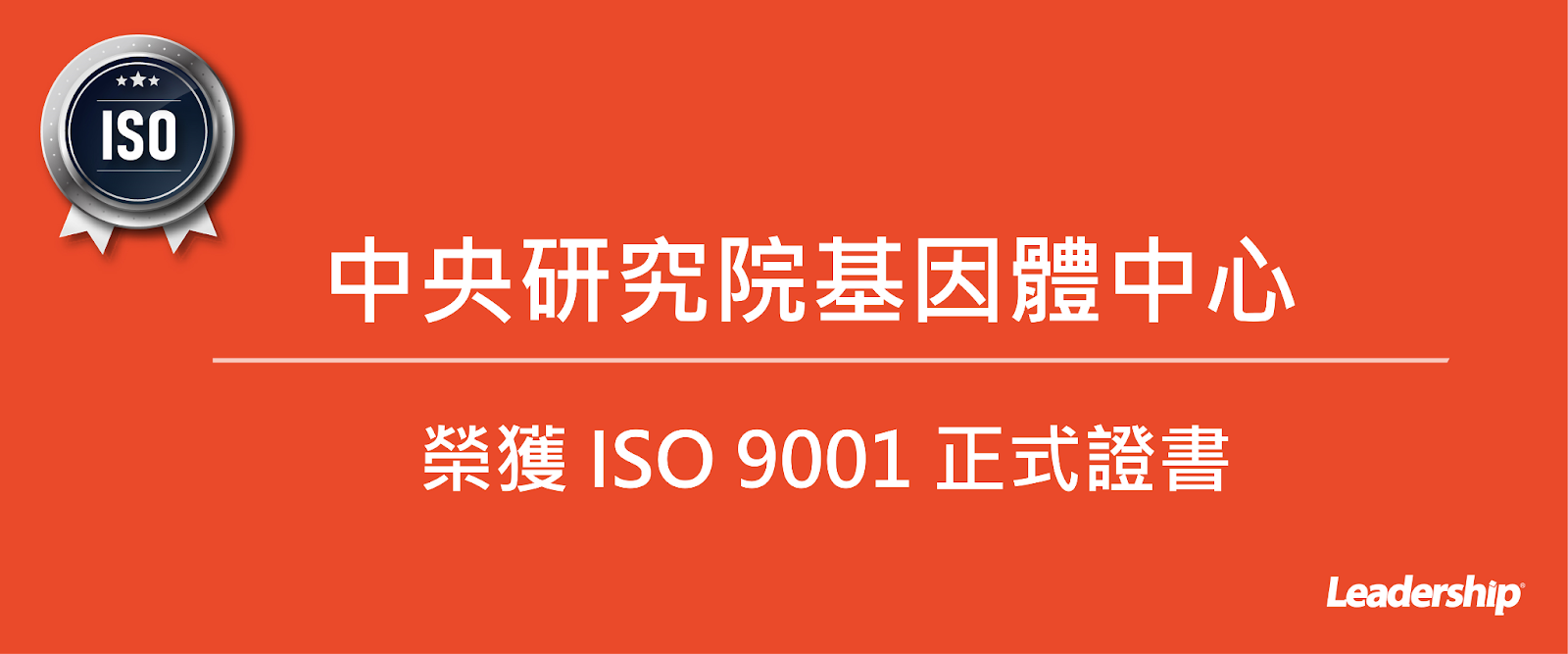 在領導力企管專業顧問輔導下,中央研究院 基因體中心 已順利完成 ISO 9001 品質管理系統(ISO 9001 :2015 Quality Management Systems)的教育訓練(Training)、系統建置(Implementing)、外部稽核驗證(Certification)3 大實施流程,並且榮獲 ISO 9001:2015 品質管理系統證書。
