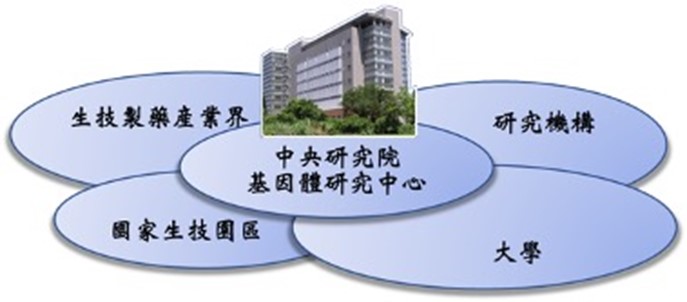 中央研究院基因體研究中心於2003年元月正式成立,積極規劃研究方向、人才延攬以及進行研究大樓興建。研究中心的任務為「進行基因體、蛋白質體、與醣質體之科學研究,以致力於找尋與確認人類疾病之標的物,發展新穎的治療方式來消弭與克服疾病」,期待將所研發的重要成果技術轉移給新創科技公司,予以產業化,帶動台灣生技產業之發展。