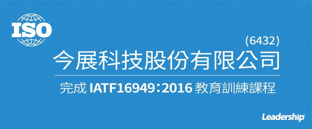 在領導力企管專業顧問輔導下,今展科技股份有限公司(6432) 已順利完成 IATF16949:2016 汽車業品質管理系統( IATF 16949:2016 Automative Quality Management System Standard)教育訓練課程(Training)。