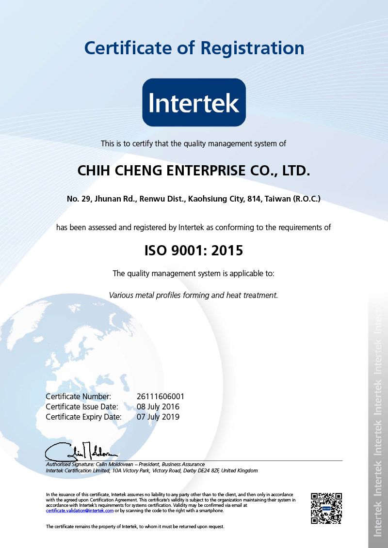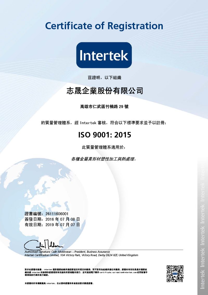 在領導力企管專業顧問輔導下,志晟企業股份有限公司已順利完成 ISO 9001:2015 品質管理系統(ISO 9001:2015 Quality Management Systems) 教育訓練(Training)、系統建置(Implementing)、外部稽核驗證 (Certification)3大實施流程,並且榮獲Intertek頒發 ISO 9001:2015 品質管理系統新版證書。志晟企業於1969年成立於台北,自創立以來,在模具製造與成型的專業領域均獲得高度成長及客戶的肯定,於現任董事長的經營團隊帶領下,帶動業務成長團隊和諧、快樂、創新,並設華南及華東地區製造據點,服務廣大的客戶群從事一貫化的生產服務,自模具設計承製、塑件射出成型、絲印、塗裝、後加工處理與組立自動化等工作;各廠皆配有:高精密模具加工設備、高效能電動成型機台、多軸式機械手噴塗等設備,以及經驗豐富的專業團隊,藉此直接與間接降低客戶成本,提高生產效率與產品精度。志晟秉持著企業文化的精神:信心、熱誠、服務、奉獻以及追求品質精益求精,提供客戶良好品質的產品與服務,並恪遵品質第一的目標,各工廠均設有高精密量測設備及國際驗證品質。透過本次ISO9001:2015品質管理系統的導入,將提供客戶更優質、高品質、高效率的產品。