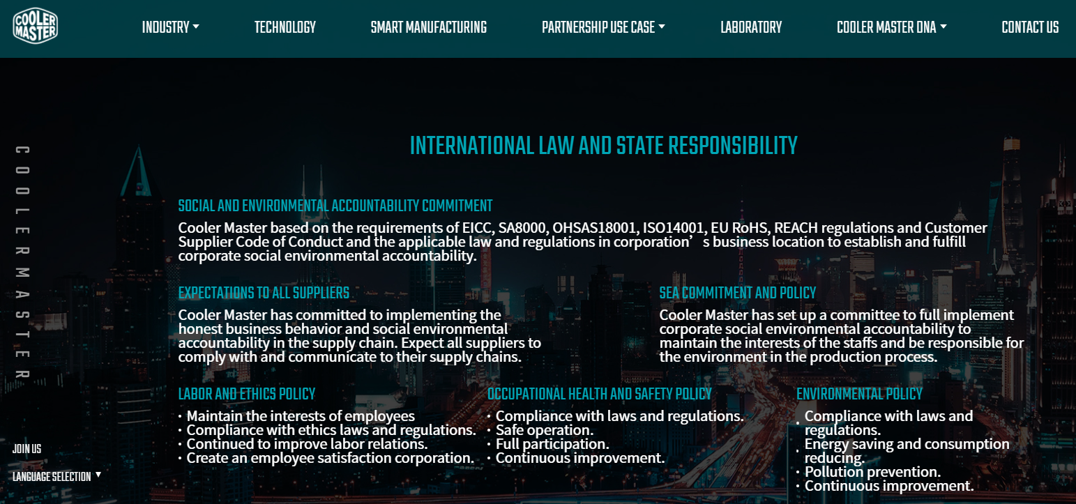 ▲ Cooler Master 訊凱國際的「社會責任政策」/圖片來源:訊凱國際官網