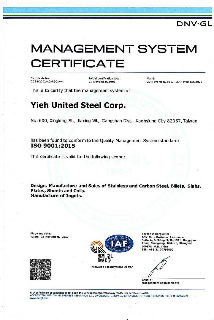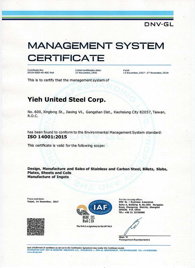 在領導力企管專業顧問輔導下,燁聯鋼鐵股份有限公司已順利完成ISO 9001:2015 & ISO 14001:2015教育訓練(Training)、系統建置(Implementing)、外部稽核驗證(Certification)3大實施流程。