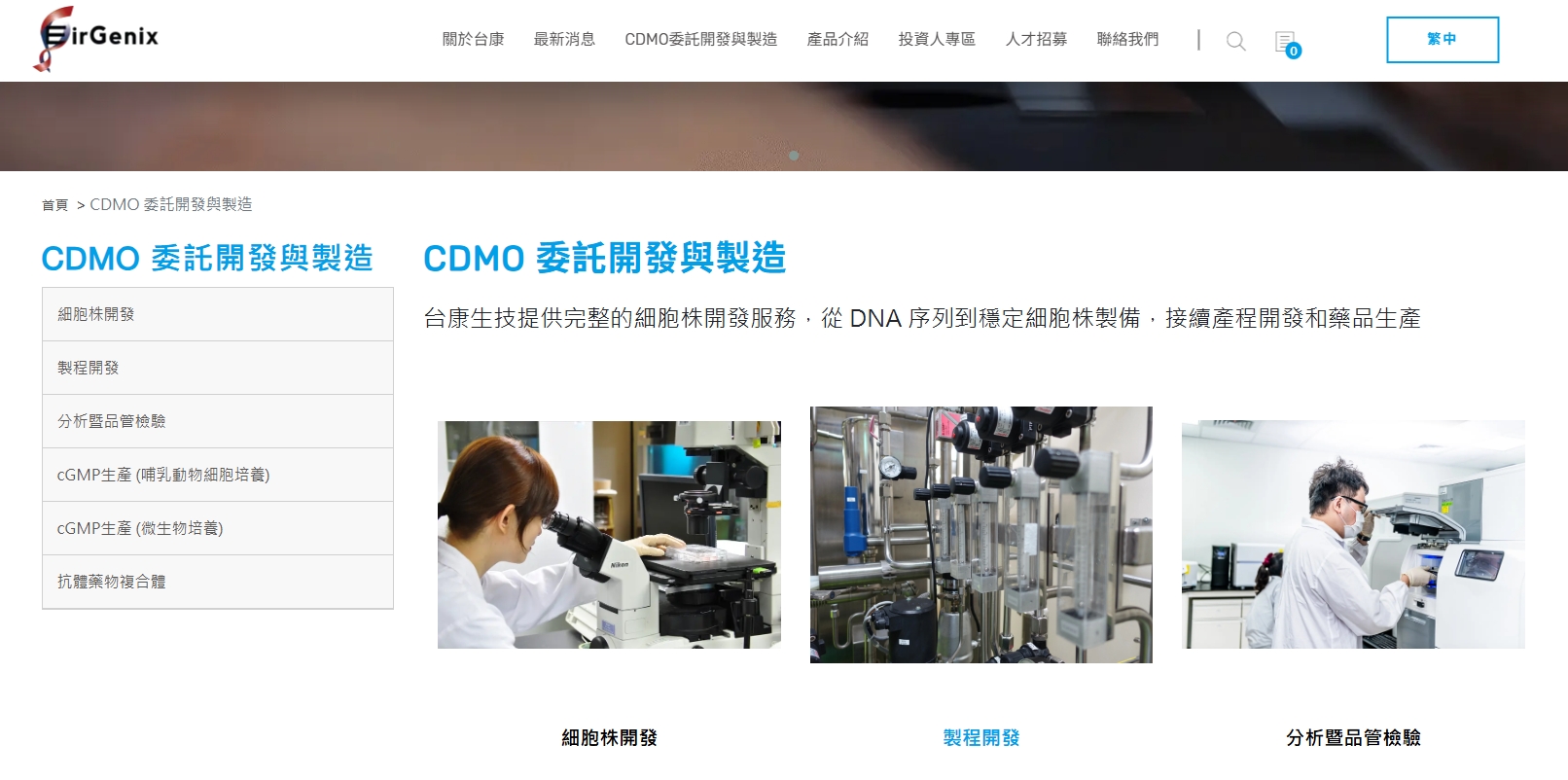 台康生技自 2012 年成立以來,深耕生物製藥領域,核心業務涵蓋細胞株建立、量產製程開發、分析技術開發及 GMP 品質系統運作,並擁有兩座通過 TFDA 認證的 cGMP 廠房,分別專精於動物細胞與微生物表達系統的製造平台。公司同時提供 CDMO 委託開發與製造服務,致力於為全球客戶提供符合國際標準的生物藥品製造解決方案。