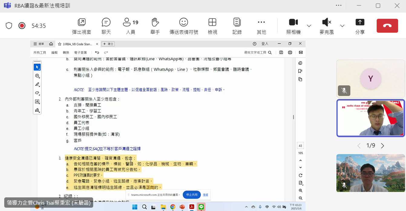 在訓練過程中,億光電子不僅致力於遵守基本的當地法規,還堅持履行國際間對人權和環境保護的高標準倡議,並努力超越這些標準與規範的要求。除了推行小組成員外,主導規劃RBA的執行單位法務總處張文憶處長及永續發展部蘇立晟主任亦積極參加培訓。