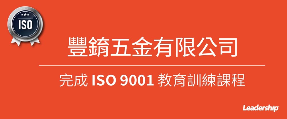 在領導力企管專業顧問輔導下,豐錥五金有限公司 已順利完成 ISO 9001 教育訓練課程(Training)。